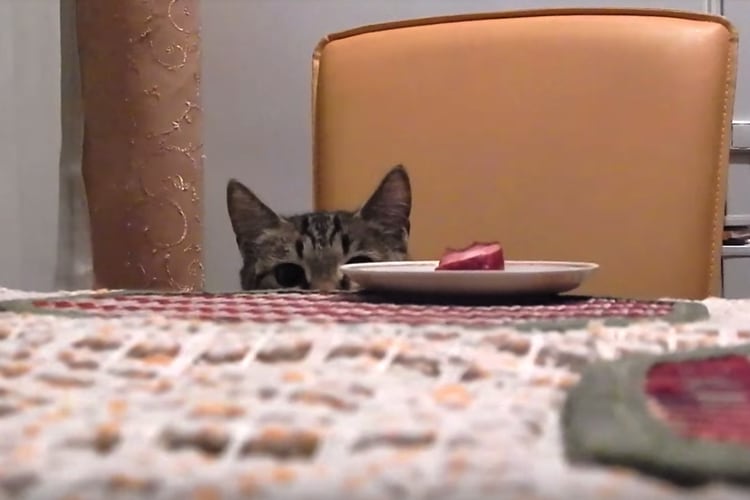 テーブルの上には大きなベーコンがひとつ しばらくすると、ニョキッ… 静かに出てくる猫さん。 そのまま食べるかと思いきや、飼い主さんと目があってしまい あっ… 隠れる→ニョキッ… 隠れる→ニョキッ… 可愛すぎる猫さんなのでした。 [youtube https://www...
