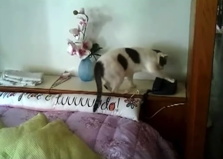 ハロー!受話器を取って挨拶もしちゃう猫。