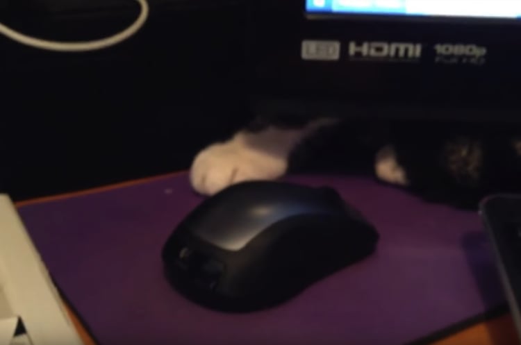 どうぞどうぞ〜!マウスの譲り合いであの芸人みたいになる猫。