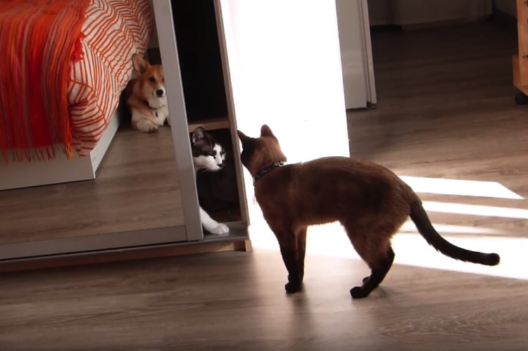 集団生活って、楽しいけれど疲れますよね。 猫さんもそれは同じのようで、鏡張りのクローゼットの扉を自ら開けて入って行く猫さん。 仲間が見にきても、ちょっといまは一人になりたいので…っと静かに扉を締め。 満足するとまた出てくるという人間味あふれ...
