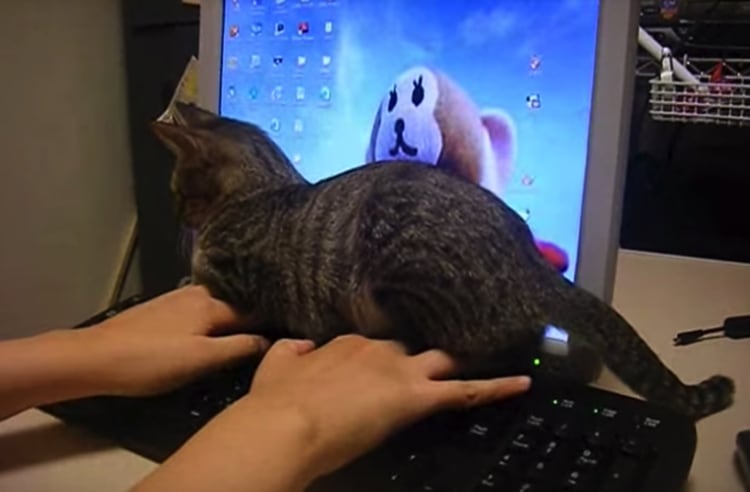 キーボードに邪魔しにくる子猫。手を浮かせてみると…?