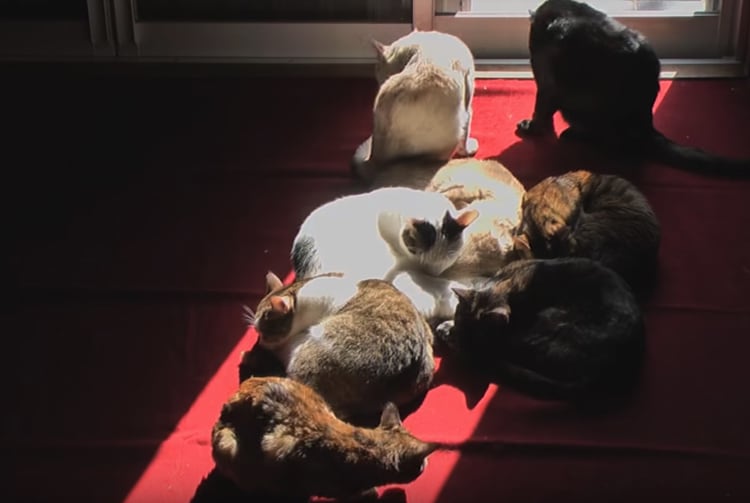 の〜んびり。暖かな陽の当たるところで 日向ぼっこしている猫さんたち。 少しずつ移動していく太陽と一緒に みんなでじりじり移動していく様子がかわいい! 癒しのタイムラプス動画なのでした。 [youtube https://www.youtube.com/watch?v=55psWVYSbrI?rel... -