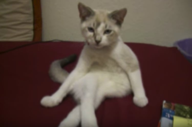 まさかのトレーニング後?人間みたいにくつろぐ猫。