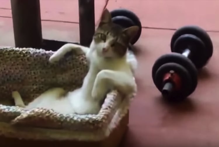 箱に手をかけてだら〜んと脱力、 まるで人間が湯船につかっている時のよう… その後ろにはダンベルがふたつ! まさか、トレーニング後の休憩? かっこよく見える猫さんなのでした。 [youtube https://www.youtube.com/watch?v=71hItoWEA54?rel=0&contro... -
