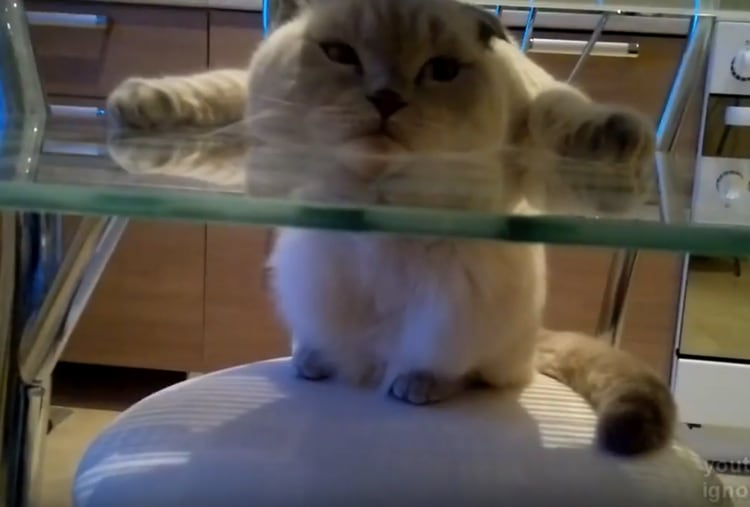 パソコンをやりつつ、テーブルの下を覗くと ぺたーん… 謎の姿勢でくつろぐ猫さん。 ガラスが冷たくて気持ちいいのかな? 狭くて落ち着くのかな? …でもその角度… なんだか不思議な猫さんなのでした。 [youtube https://www.youtube.com/watch?v=EITUajHP...