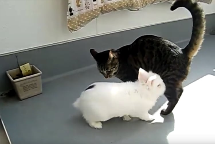なんか追いかけて来るにゃ…! 猫さんのあとをつけていたのは真っ白なうさぎさん。 どうやらお尻の匂いがきになる様子。 いつもとは立場が逆転してしまい、 困惑している猫さんなのでした。 [youtube https://www.youtube.com/watch?v=UIv-r0Wn94Q?rel=0&am... -