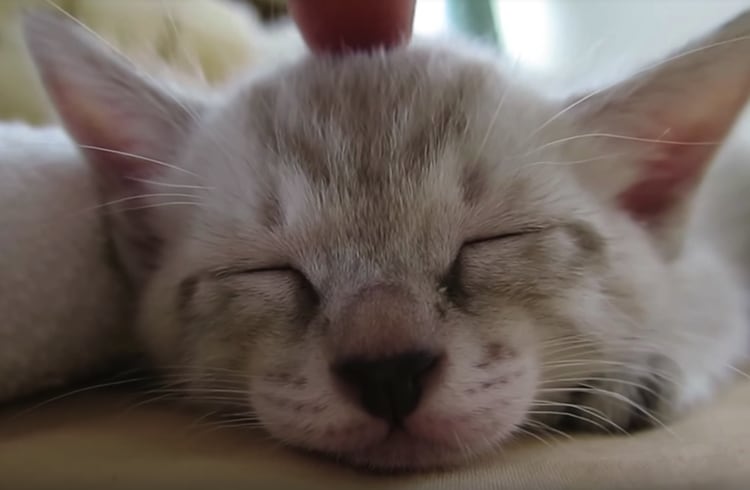 幸せ顔ですやすや眠る子猫。ツンツンしてみても…