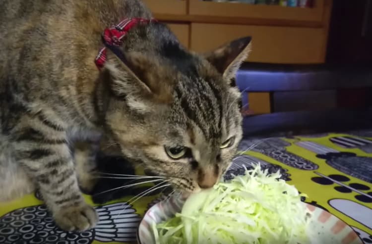 むしゃむしゃ。猫のご飯キャベツだけ?と思ったら…