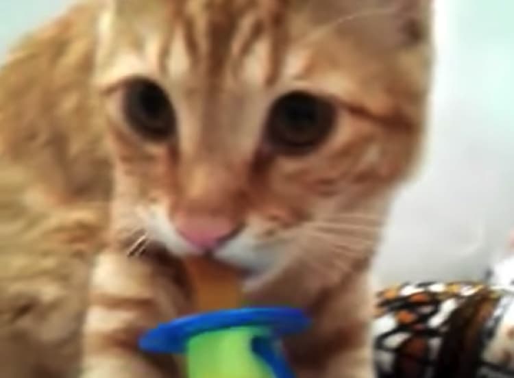 ちゅっちゅっ!おしゃぶりにハマった猫。