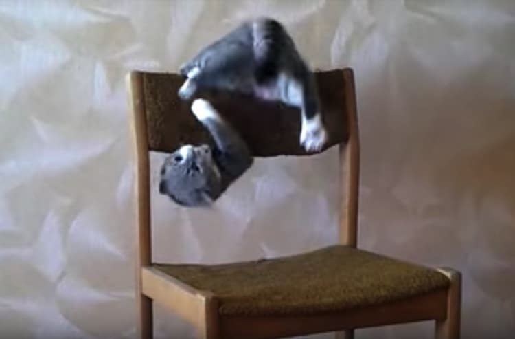 サーカスの猫?!椅子の上でアクロバティックな技を披露。