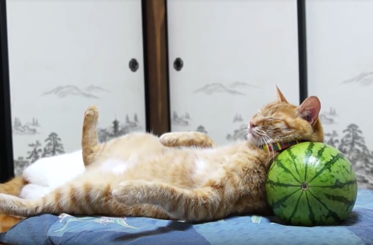 ひ〜んやり。スイカ枕で寝る猫、この後…!