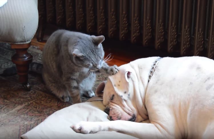 起きてほしいよう…とねこさん、 でも大好きなワンコさんを強く起こせません。 スリスリしたり、ぽんぽんしたり、 じゃあもう猫パンチ!かと思いきや そっと添い寝。可愛すぎです。 [youtube https://www.youtube.com/watch?v=J8p5GlAhnmc?rel=0&contro... -