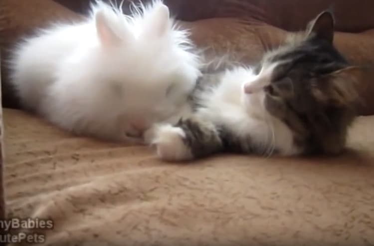モフモフ、可愛いにゃ… と猫さん。 頭から全身スリスリ、大好きがとまらない様子。 お顔もペロペロしてあげて、ぎゅー… ってそれ苦しくないかな?! フワフワモフモフ、可愛すぎるふたりなのでした。 [youtube https://www.youtube.com/watch?v=oufXP65jy... -