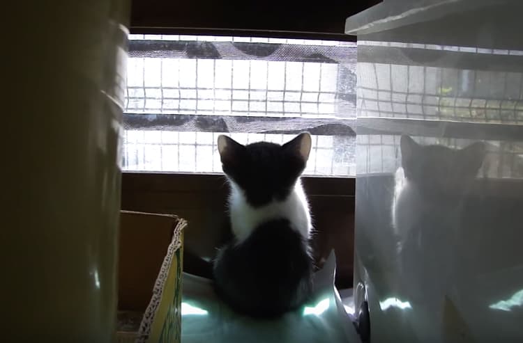 お腹いっぱいの子猫さん、外を眺めていたら…