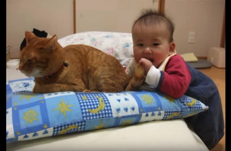 猫さんとあそびたい赤ちゃん。 くつろぎ中の猫さんの尻尾を… がぶりっ! ばっと振り向く猫さん、流石に猫パンチ… かと思いきや、赤ちゃんの姿を見ると納得。 仕方ないにゃあ〜と見守る 優しい猫さんなのでした。 [youtube https://www.youtube.com/watch?v... -