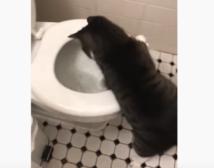 「水、つかまえてやるっ!」毎日、水洗トイレと闘う猫さん。