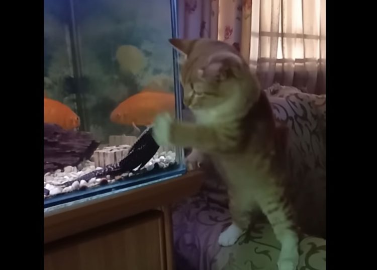 猫「いつか絶対…」毎日水槽を見て、魚捕獲計画を立てている猫。