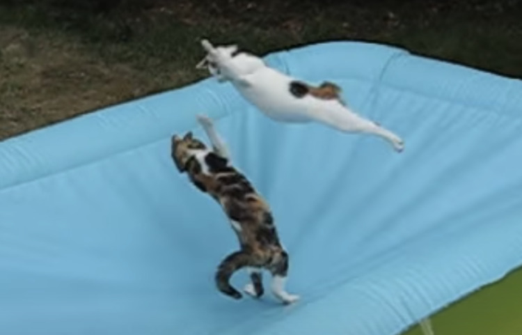 ひっくり返したビニールプールの 上で遊んでいる猫さんたち。 お水が入っていると近寄らないけど、 水が入っていないなら大丈夫! ツルツル滑ったり、 ちょっと跳ねる感じが最高に楽しそう。 いつもよりジャンプ力もアップしてる? プロレスごっこのように... -