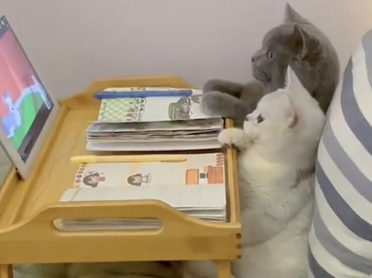 仲良くならんでお勉強? 真剣な表情の猫ちゃんズ。
