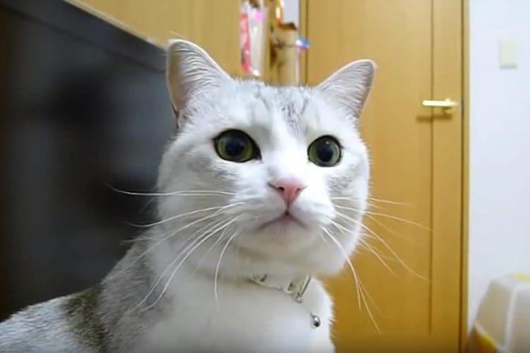 ごはんが欲しい時の猫さん。鳴き声がなぜかあの動物にそっくり。