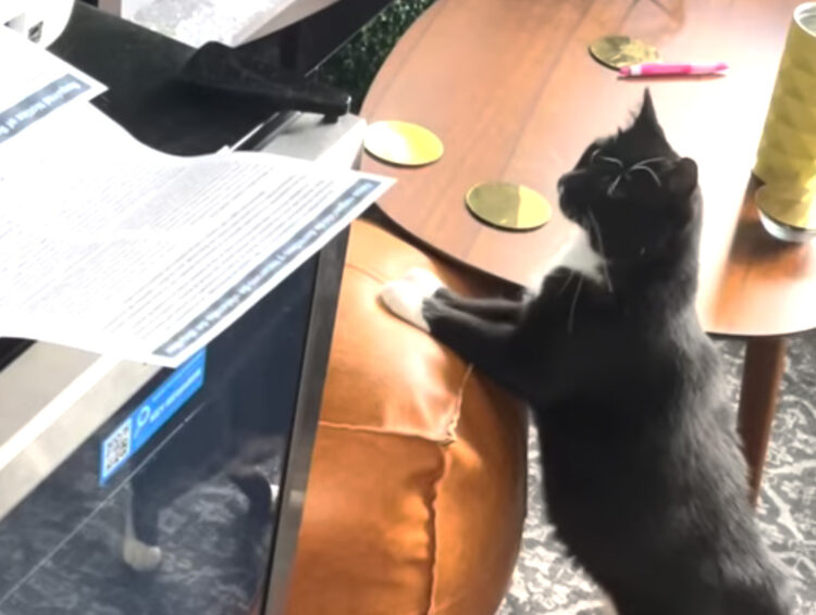 なんだかタキシードを着ているみたいな 可愛らしい白黒模様の猫さん。 飼い主さんのお仕事部屋で遊んでいたら 突然聞き慣れない音がしてビックリ!! プリンターが動いている音ですね。 ちょっとずつ用紙が出てくるたびに 音に合わせてビクッ!ビクッ!と... -
