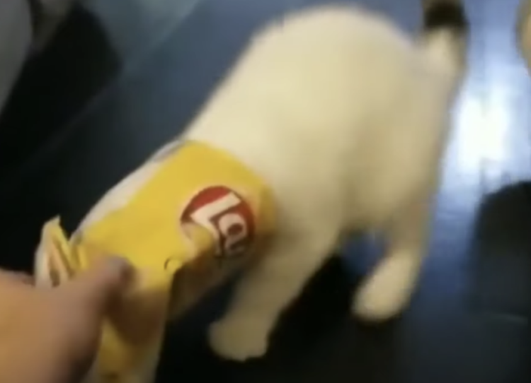 食いしん坊な子猫さん。 こっそりお部屋に置いてあった、 ポテトチップスの袋で勝手に遊んでいたようで 飼い主さんが気付いた時には 頭にすっぽりと袋をかぶって、 「何も見えない〜!」とフラフラ。 小さい声でニャ、ニャ...と 助けを求めるように歩いて... -