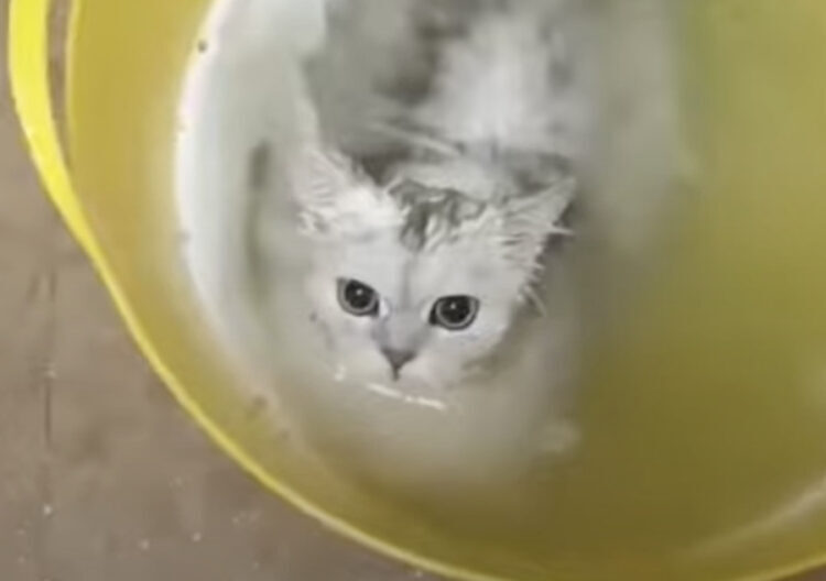 「入りたいの〜!」飼い主に止められても水の中に飛び込む猫。