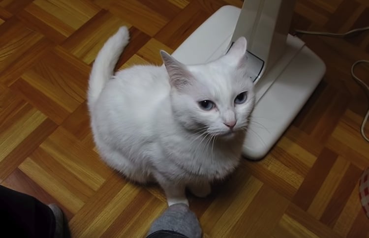 踏まれると、足をそっと踏み返す猫。