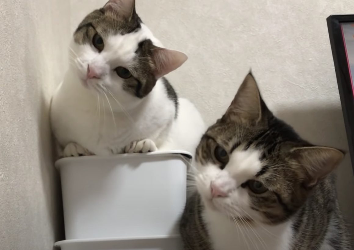 息ぴったり♪シンクロしている仲良し猫さんたち。