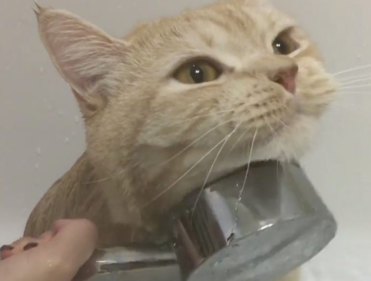 暑くなってきたし、 そろそろ換毛期? しっかり毛づくろいをして お風呂に入らなくっちゃ! こちらの猫さんは、一般的に 水を嫌う猫さんと違って 水に濡れても全然嫌がらない、 むしろ気持ち良さそうな表情なんです。 飼い主さんが顎周りを洗ってくれると ...