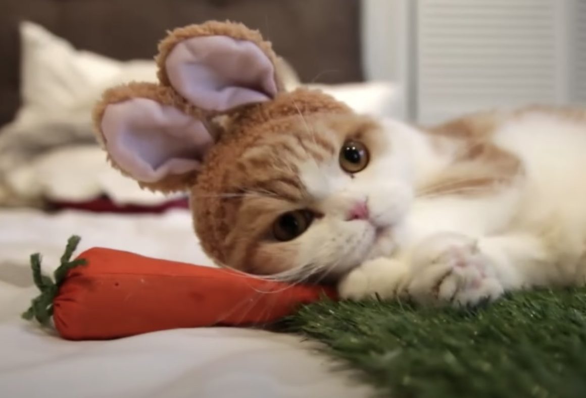 可愛いウサギさんがベッドでくつろいでる。 と思ったら、可愛い猫さんでした〜。 スコティッシュフォールドの猫さんがうさ耳をつけてる! 飼い主さんが人参のぬいぐるみを差し出すと、 喜んで人参にスリスリ。 アゴの下に人参を置いてグリグリして遊んだり... -