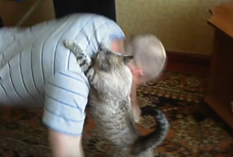 可愛いトレーニャー?筋トレをしていると負荷をかけてくる猫。