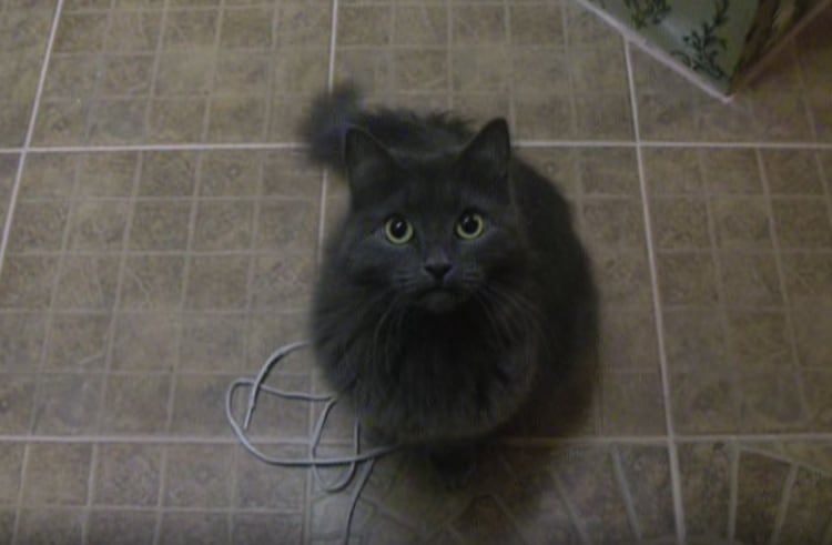 おもちゃは結局くつ紐がいちばん?おねだりする猫。