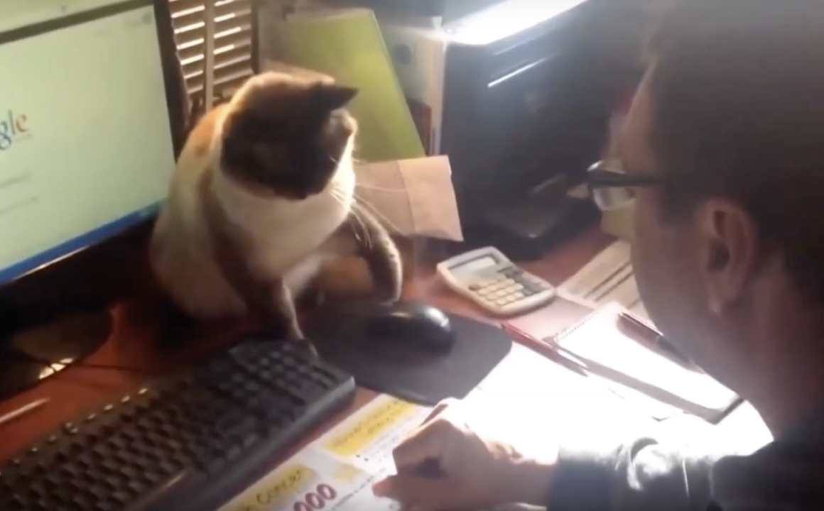 パソコンで作業したいんだ〜! 画面の前に座る可愛いシャム猫さん。 飼い主さんがマウスに手を伸ばすたびに...パシッ! 作業が進まない飼い主さん、けどなんだか嬉しそうですね。 ねこさんが飽きるまでこの攻防は続いたそうです。 出典:Животный мир -