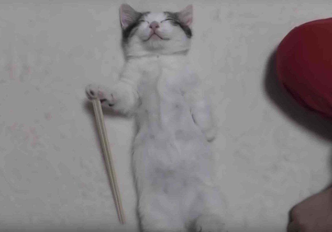 熟睡している子猫、豆大福さん。 遊び疲れたのかな? 仰向けで、全く起きる気配がありません。 いい夢見てるのかな〜寝顔が可愛いです。 飼い主さんにあんなことやこんな事をされても... なぜ起きないのってくらい、起きない! (この杖を持ってる感じ...ど...