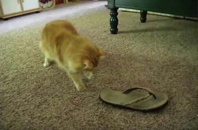 何奴?!ビーチサンダルにものすごく威嚇する猫。