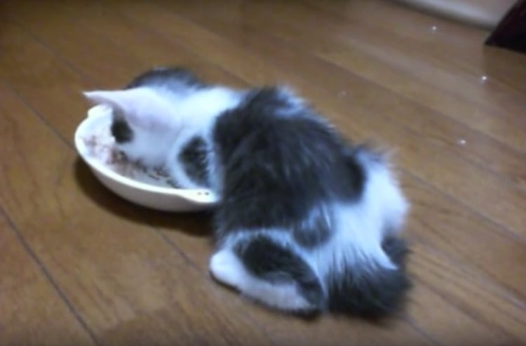 食べたいけど眠い…!ごはん中に眠くなってしまった子猫。
