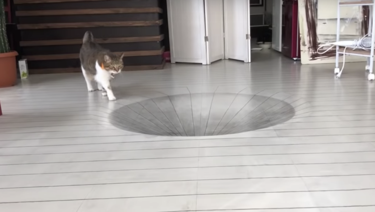 ねこにトリックアートのドッキリを仕掛けてみたら…