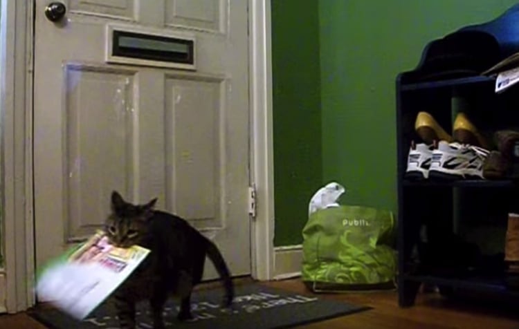 シュバッ!!一瞬で郵便物を取ってきてくれる猫。
