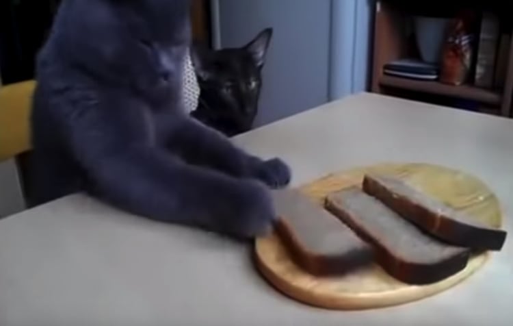 連携プレーで獲得なるか?パンが欲しい猫たち。