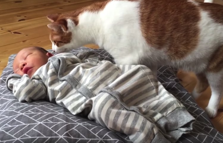 どうしたらいいの?!赤ちゃんと猫、初対面の瞬間。