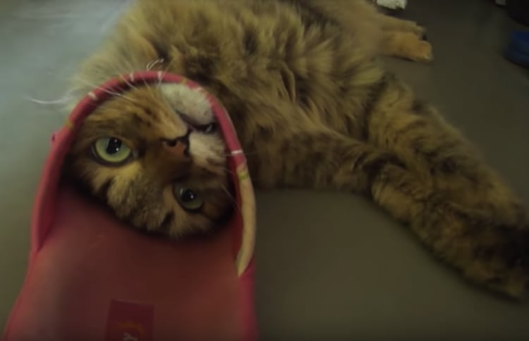 遊び方が独特すぎ!スリッパにがっつりハマる猫。