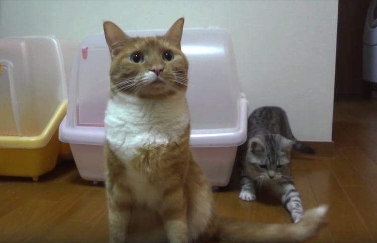 先輩猫のしっぽで遊びたい子猫さん だけど戯れると… キッと睨まれちゃってフリーズ。 どうにか怒られない方法を考えた結果… ぐるぐるぐるぐる回ってその勢いでしっぽにタッチ! フェイント攻撃を思いついた子猫さんなのでした。 [youtube https://www.yout... -