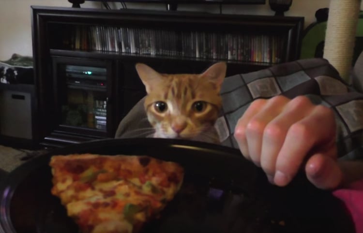 完全にハンターのそれ!どうしても人間のご飯が食べたい猫。