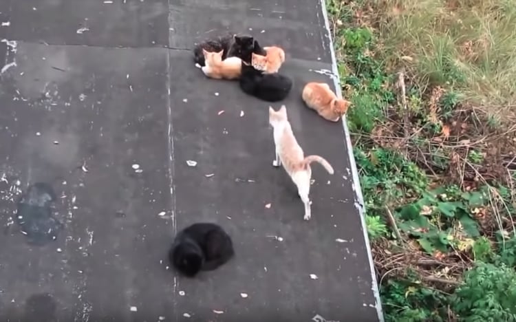 道路の端っこでおだんごになってぎゅぎゅう… 寒さをしのいでいる猫さんたち。 すると下の方で寝ていた猫さんがトコトコやってきて 猫団子の上にどーん! まさかのそこに座っちゃう? 足の裏が冷たかったのか、羨ましくなったのか… 大胆なことをする猫さん...