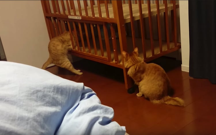 おバカすぎて愛しい!猫がベビーベッドで遊んでいたら…