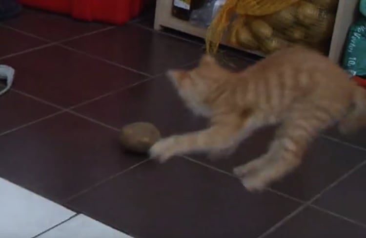 びょんびょん跳ねて超ハイテンション! 何かと戦っている子猫さん。なんの生き物かな?と思ったら… まさかのじゃがいも。しかもただの、普通のじゃがいも。 そんなに熱くなれるのは逆にすごい!と思っていたら 急に冷めて、スタスタ去っていってしまう子猫... -