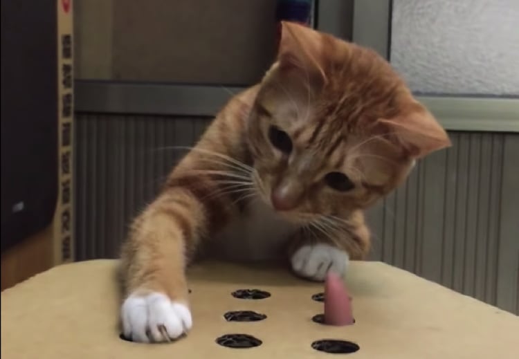 手作りしたくなる可愛さ!モグラ叩きに夢中の猫。