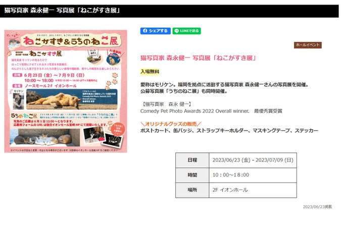 【ねこがすき展に行ってきました!】 イオンモール宮崎で開催されている森永健一さんの「ねこがすき展」に行ってきました! ねこが好き展概要 期間:2023年6月23日(金)~7月9日(日)時間:10:00~18:00入場:無料会場:イオンモール宮崎2F イオンホール住所:... -