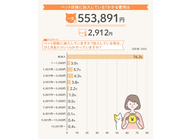ペット保険は未加入が76%(加入が24%)。ペット保険の金額も大きいですね。